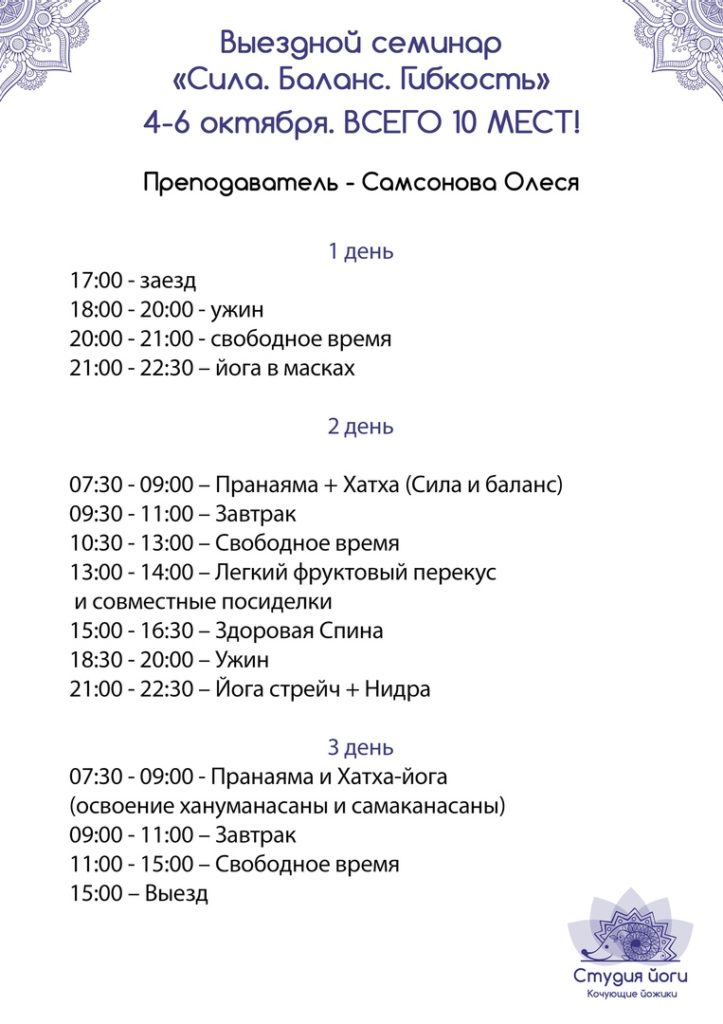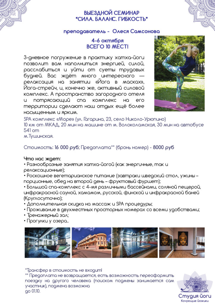 - Выездной семинар «Сила. Гибкость. Баланс.»